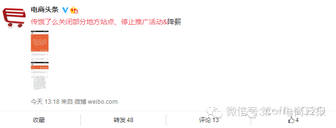 据微博“电商头条”爆料,在线外卖订餐网站饿了么关闭了营口、铁岭等多个城市分站。同时,饿了么的首单立减、在线支付减免等活动力度也明显大幅下降,部分城市的用户活动甚至已全部下线。由此看来,饿了么面临着沉重的资金压力。
