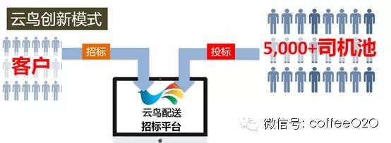 “同城极速配送平台”云鸟配送利用互联网思维首创了平台式“招投标”配送模式,O2O零售企业只需要在平台上发起招标,平台海量司机在条件匹配情况投标,企业择优使用,完全自助操作。这样,省去传统同城干线配送中的多个中间环节,大大减少配送人力、物力、财力成本。