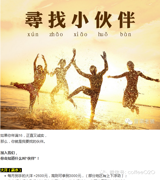 人才对餐企发展的重要性越来越高,一款有创意亮点的海报给人良好的第一印象,怎样的招聘广告更具有吸引力?最近O2O君从朋友圈翻出几款有创意的招聘海报,微友们一起学习吧!