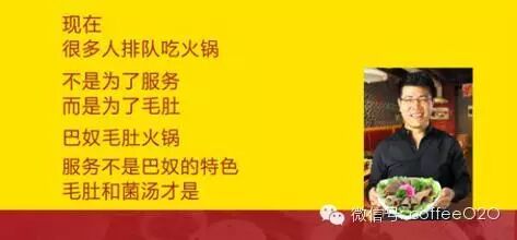 巴奴毛肚火锅对传统的挑战同样“赤裸裸”,这家火锅品牌一反海底捞为代表的火锅行业“以服务取悦顾客”经营模式,提出“服务不是巴奴的特色,毛肚和菌汤才是”。高举产品品质大旗,也获得市场高度认可。