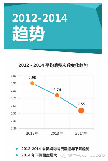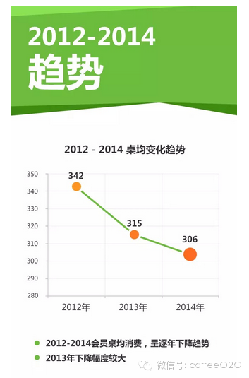 O2O君评论:这两年总体经济呈下滑之势,消费者趋理性消费,餐饮更是向大众化餐饮发展,所以桌均下降是顺应经济形势与餐饮发展趋势的,都是正常的。而平均消费频次略微下降是因为这几年餐厅数量急剧增加,而需求的增长幅度没有同步增长,从而分流了消费频次。