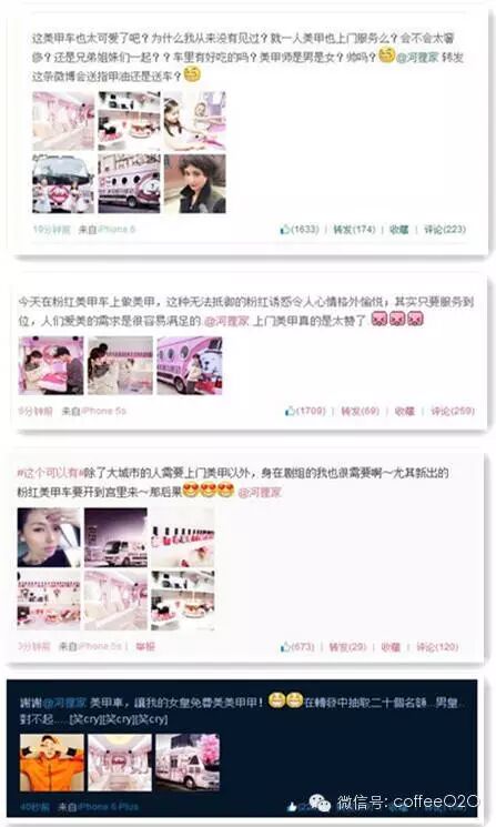 明星营销在快消品、时尚界等领域屡见不鲜,但在目前大热的移动互联网领域仿佛其实不多见,“上门美甲第1大”的河狸家APP标新立异。虽成立只有短短半年多时间,却已风行北京、上海时尚女性1族,这与其1直重视明星营销仿佛很有关联。大S、陈彦妃、李小璐、66、周冰倩、李艾、张歆艺和刘涛等明星都亲身体验 过河狸家美甲,多位时尚圈意见领袖也在自媒体上盛赞过河狸家美甲。众多明星和时尚人士的追捧对时尚女性的影响不言而喻,河狸家APP的用户数从无到有迅速膨胀至数10万,并成为时尚女性圈中热门话题。