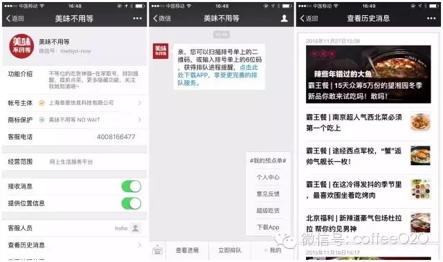 《美味不用等》也是自己亲身体验过的一个公众号,它吸引人的点在哪呢?在合作餐厅下单之后,只要关注扫描了排队二维码,你就可以安心逛商场了!