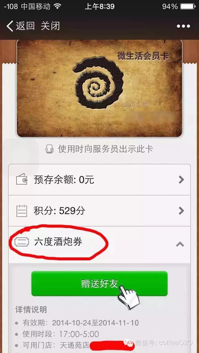 先说一个会员裂变的例子:这是北京五环以外,天通苑店开业给会员发的酒炮券。