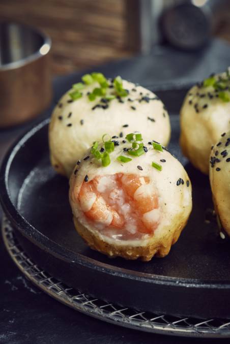 每只大虾生煎平均具有18个拼接褶皱完美隐藏在生煎底部,表面均有>30颗感应粒子,在进入口腔时带来特殊的口感。在视觉上,也创造了极致的美感。
