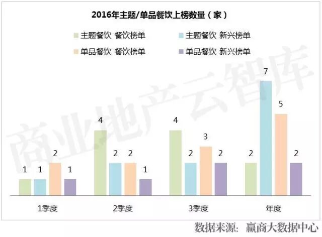 从榜单来看,主题餐饮持续分化、细化,创新热情高,上榜数量居高不下;单品餐饮借助互联网,实现快速复制,与当下餐饮 “零售化”、“快时尚化”趋势相契合,关注度持续走高。