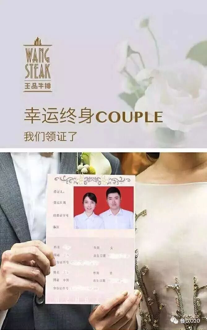 情人节当天将“终身免费吃王品”名额给了一对刚领证的新人,来这样的一波温情满满的营销活动,这刚好很符合王品自身的品牌定位。