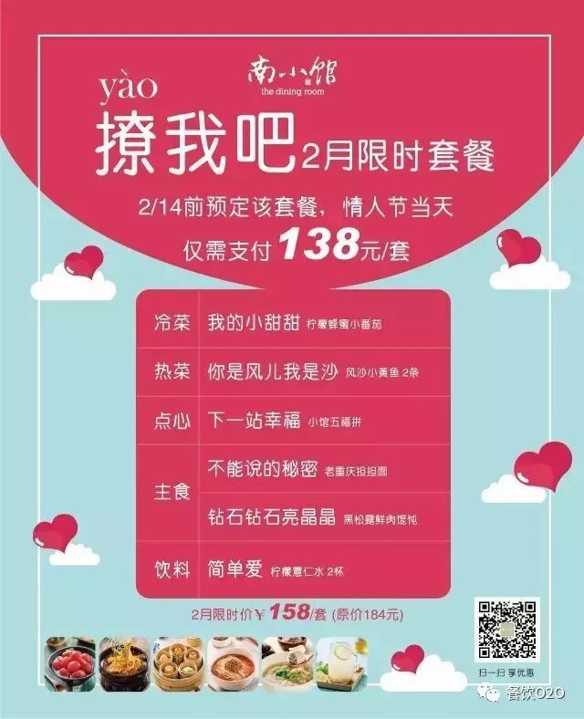可能由于南小馆是上市公司,应该有业绩压力,再者家大业大不是很注重这些的活动,因此在情人节其他餐饮在搞情怀玩浪漫的时候,开始做套餐。