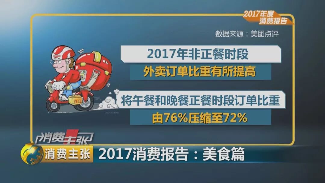 2017年,非正餐时段外卖订单比重有所提高,午餐和晚餐正餐时段的订单比重由76%压缩至72%。
