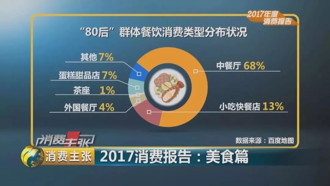 “80后”对于中餐的占比只有68%,而小吃快餐、蛋糕甜品、外国餐厅的占比则分别达到了13%、7%和4%。