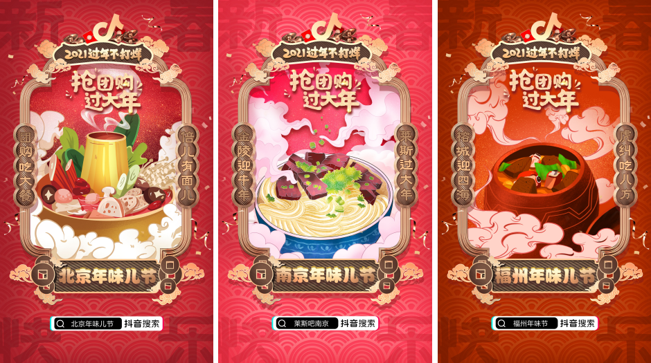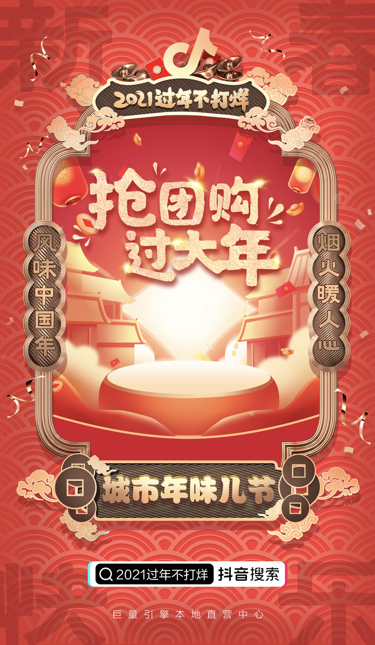 https://p6-tt.byteimg.com/origin/pgc-image/SNnA07YDAMlh02?from=pc团购券将覆盖:餐饮美食、酒店文旅、大休娱等综合生活消费领域,与此同时联动本地美食等领域达人为本地商户拍摄短视频,实现在抖音“从内容种草到线上拔草”一体化的营销模式,打造2021新春一键拔草到店的年味消费盛宴。