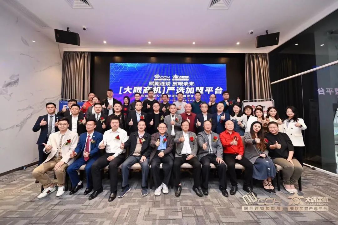 道合餐饮集团、探潮餐饮集团、常平竹昇云吞面、包道/煎饺王子、家门巷常德米粉、领通互联、大事件、迅手信息科技集团与大眼商机签战略合作仪式合影