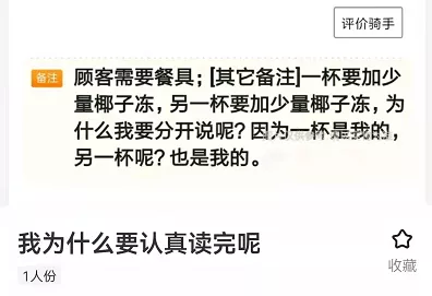 一杯要加少量椰子冻,另一杯要加少量椰子冻,为什么要说分开呢?因为一杯是我的,另一杯呢?也是我的。
