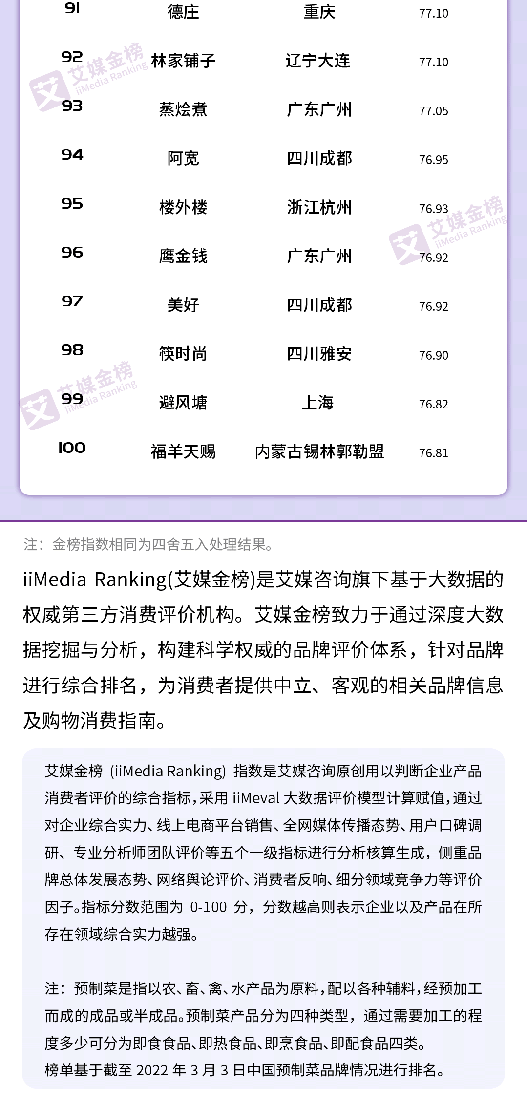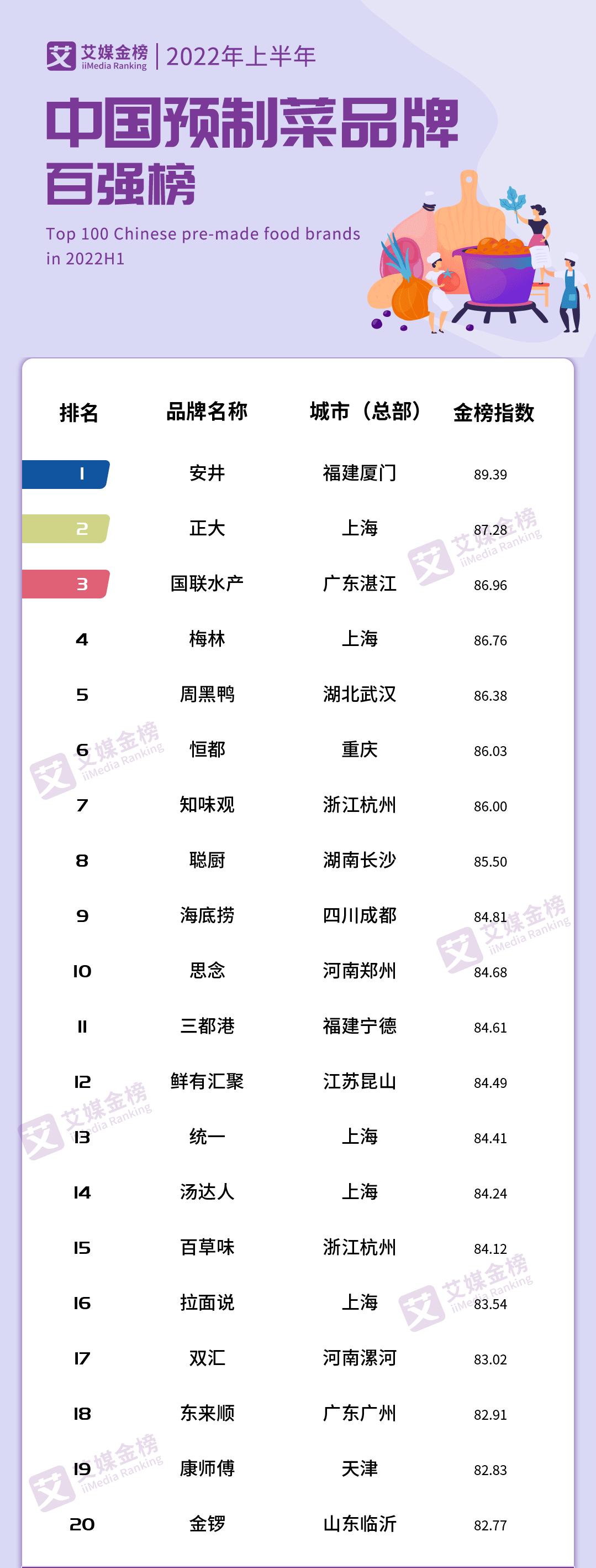 一份名为《2022年上半年中国预制菜品牌百强榜》的榜单在朋友圈流传。这个由第三方数据挖掘和分析机构艾媒咨询发起的评选,吸引了超百家企业角逐,获得数十万网友的关注与投票。