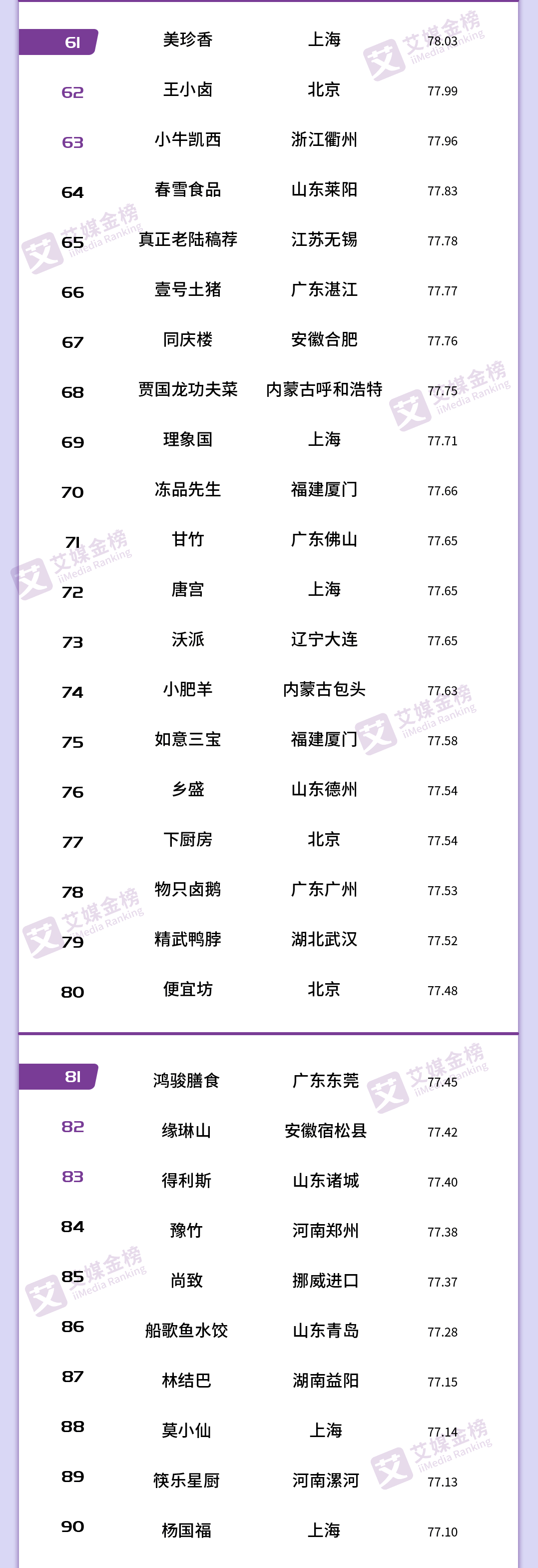 同样意外的还有,古龙、甘竹、豫竹...等企业也出现在榜单上,做团餐的鸿骏膳食也排在列。
