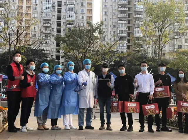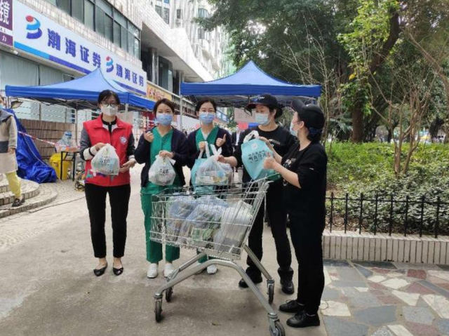 深圳红荔村餐饮管理有限公司支援园林街道,支援工作餐1万份,饮用水150箱。