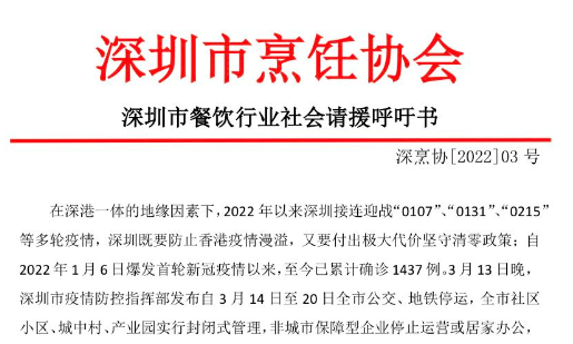 疫情反复,《深圳市餐饮行业社会请援呼吁书》刷屏餐饮圈