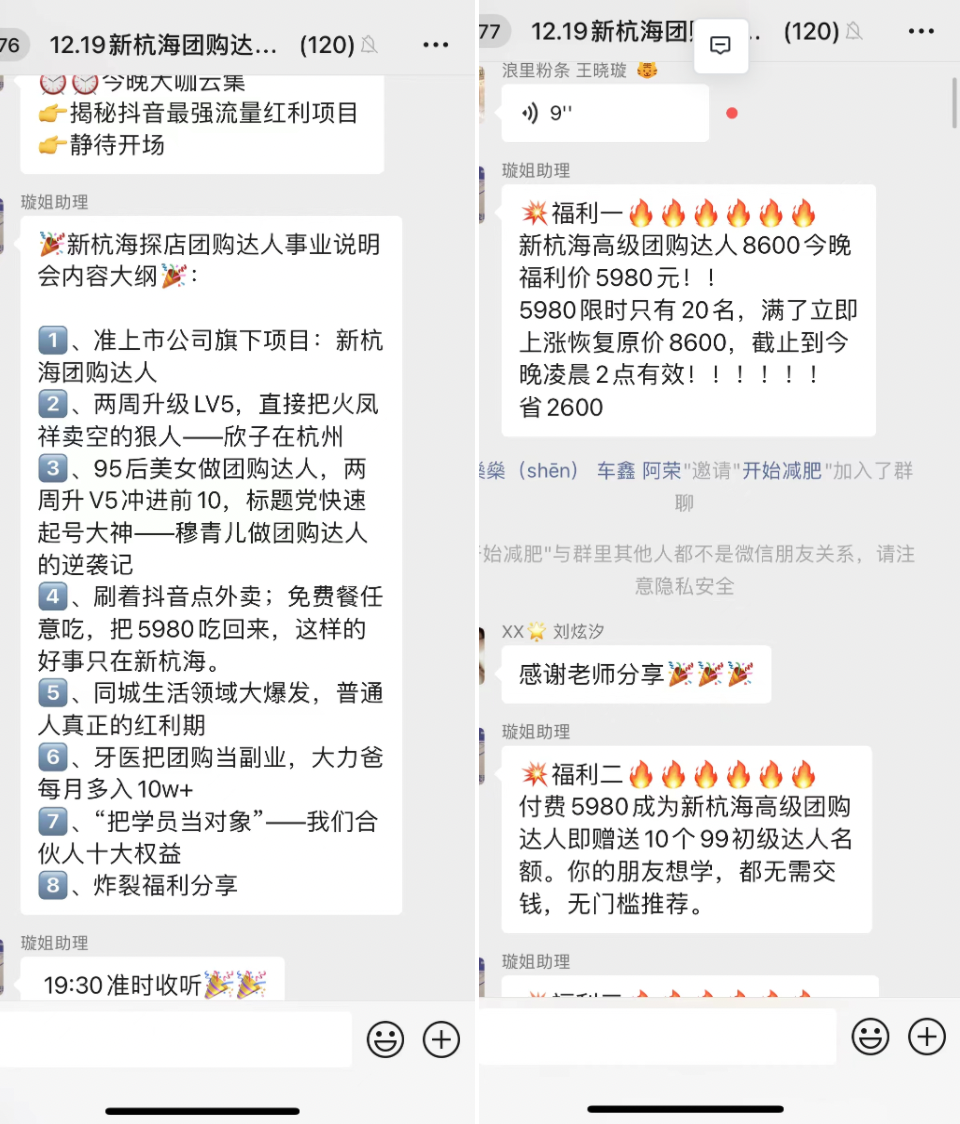 在线上说明会进行项目说明、优秀达人的分享和数据展示、讲解课程交付的流程,最后的福利阶段制造 5980 元高级学员的紧张感。
