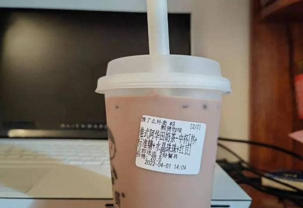 4月1日,陈先生通过外卖买到一杯奶茶,但很快后悔:“要把运力留给有需要的人”