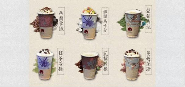 而在产品的命名上也是别出心裁,绿茶名为浣沙绿、红茶名为红颜、增加了坚果、巧克力等配料的奶盖茶系列被称为“豆蔻”。