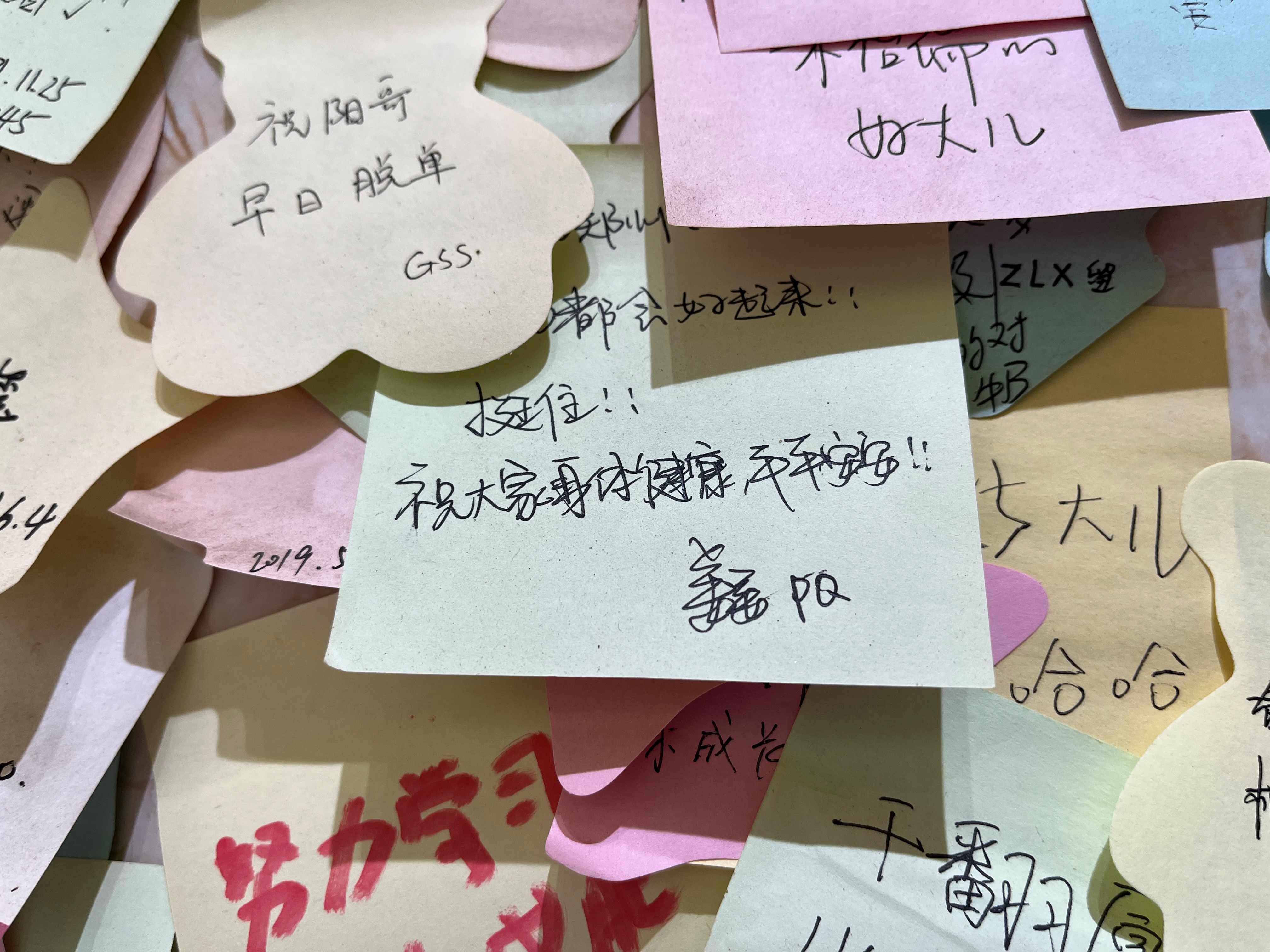 刘晓珍在店里布置了一面愿望墙,上面贴满人们写下的各种愿望。720洪灾后恢复营业的第一天,一位老顾客留下一个愿望条,“郑州挺住,一切都会好起来的。”