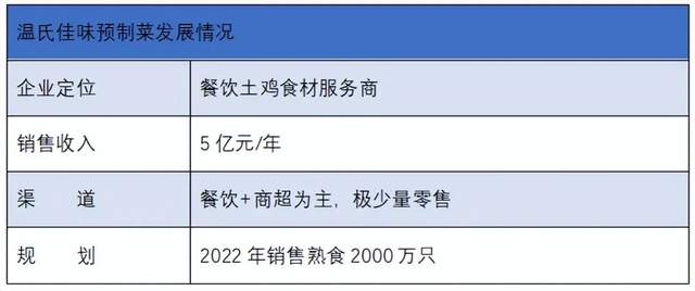 目前,温氏佳味共推出“功夫熟鸡”、“大师菜系列”、“功夫烧卤”、“综合系列”等多款预制菜品,年销售额达5亿元。