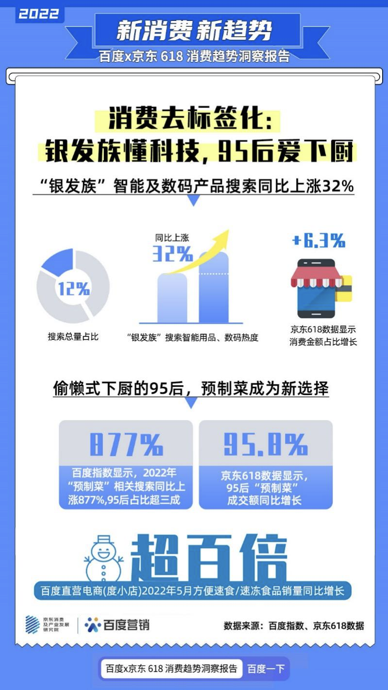 近日,百度联合京东发布《百度x京东618消费趋势洞察报告》,其中提到:“偷懒式”下厨的年轻人带动了预制菜的蓬勃发展。