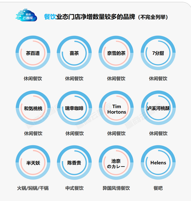 咖啡品类开店数目也不少,瑞幸咖啡强势扩张超60家门店;Tim Hortons、M stand、ARTEASG等新玩家净增30家以上门店。