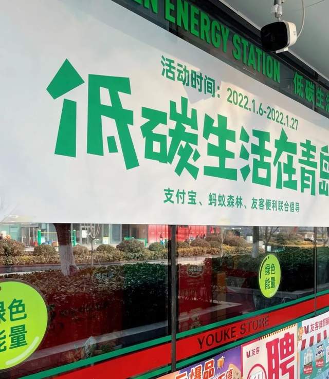 在支付宝蚂蚁森林与有客便利店的联名活动下,青岛卓越大厦开了市内第一家环保主题便利店。