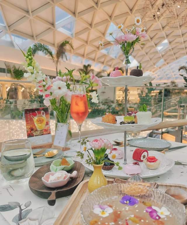 据了解,该店总面积达到1000,店铺以白绿色风格为主,风格清新自然,像一座花岛坐落在万象天地的顶楼中央。