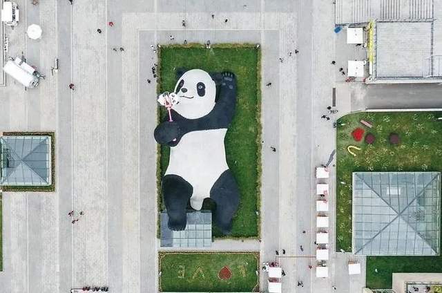 成都339“喝麻了的楼顶熊猫”,它以俯卧的姿势趴在楼顶平台,把脑袋伸出去“偷窥”街面;成都米瑞广场“头皮破损的楼顶熊猫”;成都汪家拐“袖珍版爬楼熊猫”。