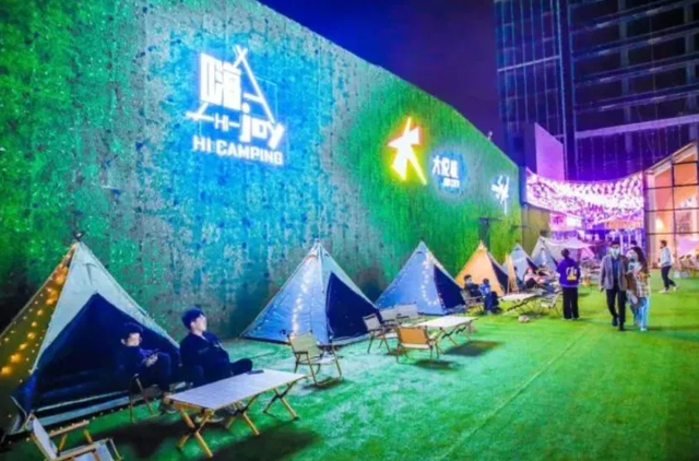 从今年4月开始,武汉大悦城在L5星空露台打造了“嗨JOY城市露营X计划”露营野趣活动,联合「嗨营」打造了武汉首家天台营地,为消费者提供露营场地,活动将持续到年底。