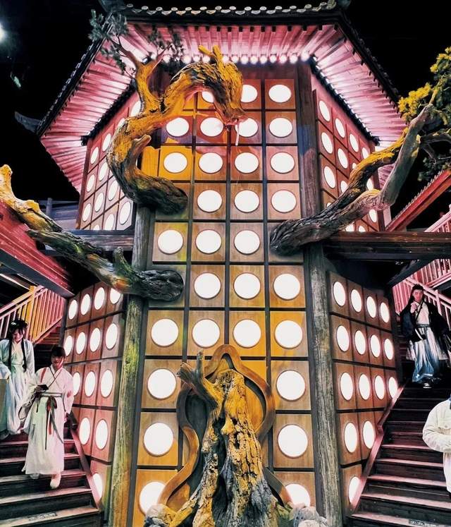 除二次元风格外,国风主题也备受欢迎。占地4000平米的戏精桃花源算得上是北京市独一份的大型国风沉浸式主题馆。