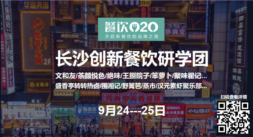 https://mmbiz.qpic.cn/mmbiz_jpg/IS8mRLwVcUX9UpYPzD9In6vibzcq9bQHGBH1LTlxFPt1CN9Hibia4MWXicXtWMPFBNQ0OJFcS3HibxCyfWm4Agjib8nw/640?wx_fmt=jpeg&wxfrom=5&wx_lazy=1&wx_co=1提起湖南长沙,或许大部分餐饮人内心都会浮现一个词汇,网红。这个城市虽然在规模经济上无法与成都、重庆、武汉等相比,但在商业消费上却走在成都等二代网红“前辈”前头,拥有着持续的“造星”力、涌动的创新力。特别是在“吃”这个层面,长沙餐饮人极具创新能力,不仅孕育了文和友、茶颜悦色、王捌院子、盛香亭等全国知名网红前浪,近年更是杀出了汉元素虾聚乐部、野篱笆渔虾集市、蒸市等沉浸式主题新网红品牌,可谓是当之无愧的网红餐饮汇聚之城。纵观整个中国商业市场,似乎还没有哪一个城市能超越长沙,拥有如此庞大的网红餐饮创造力,偏又玩法多样,“怪点子”层出不穷,让每一个网红餐饮品牌都形成了自己的“独特个性”,吸引着全国众多餐饮“潮牌”朝拜取经。9月24-25日餐饮O2O长沙创新餐饮游学团带你去长沙,走进这个网红餐饮城市,走入文和友、茶颜悦色、绝味、王捌院子、笨萝卜、聚味翟记总部,与品牌创始人面对面互动交流,探寻餐饮文创基因以及网红品牌的塑造秘诀;同时,我们还将带领餐饮人考察野篱笆渔虾集市、蒸市、汉元素龙虾聚乐部、围湘记等餐饮网红门店,学习餐饮沉浸式场景打造。