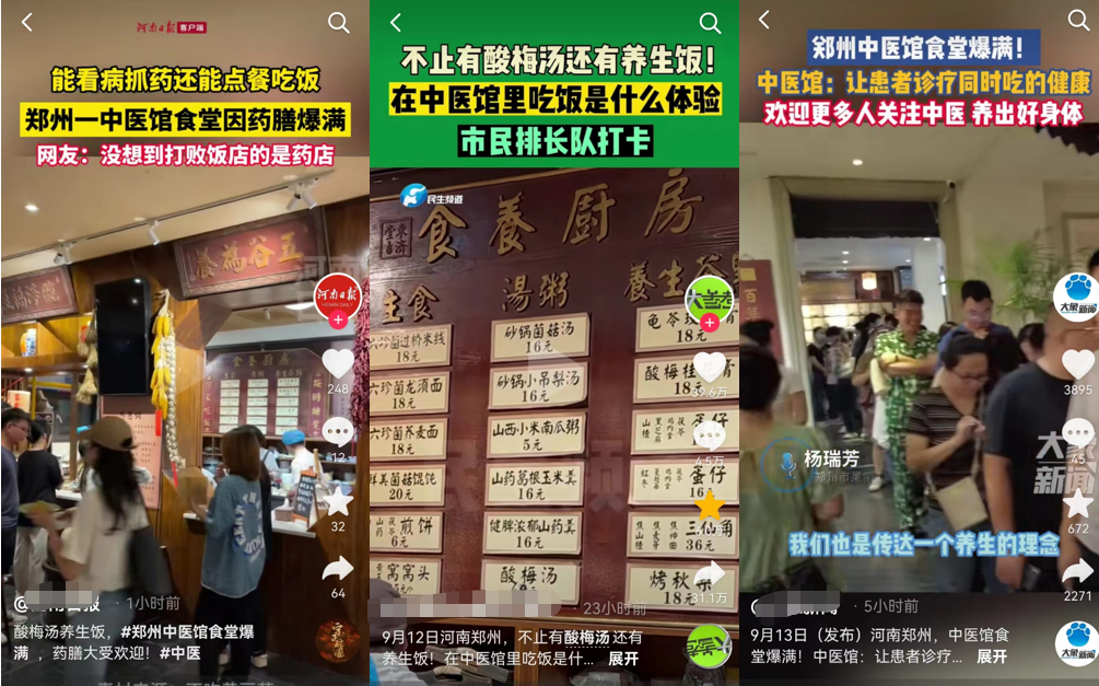 近日,抖音平台上爆出了一则#郑州中医馆食堂爆满#的热搜,目前新闻热度已超200万,讲的就是典型中药+快餐案例。