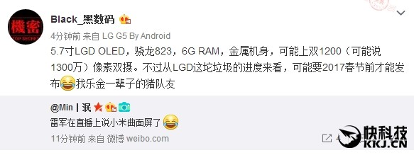 不过,看上去LGD的曲面屏进展很一般,短期内无法批量供货,所以曲面屏的小米手机可能要到2017年春天才会发布。另外,这款曲面小米还会配备金属机身、骁龙823处理器、6GB内存、双1200万像素后置摄像头(可能会宣传1300万像素)。