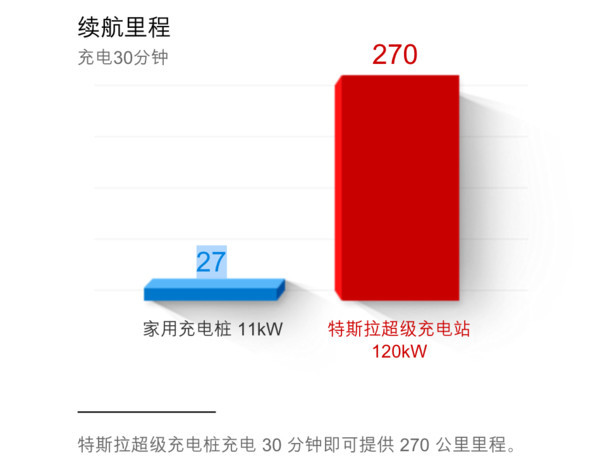 “超级充电站”快充免费,备受车主好评。30 分钟充电可开 270 公里里程,而家庭充电桩只能开27公里。