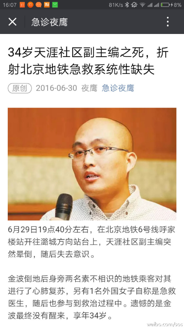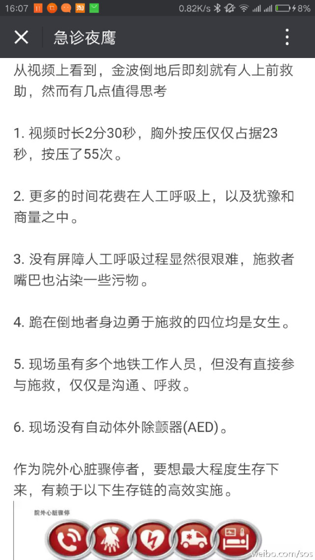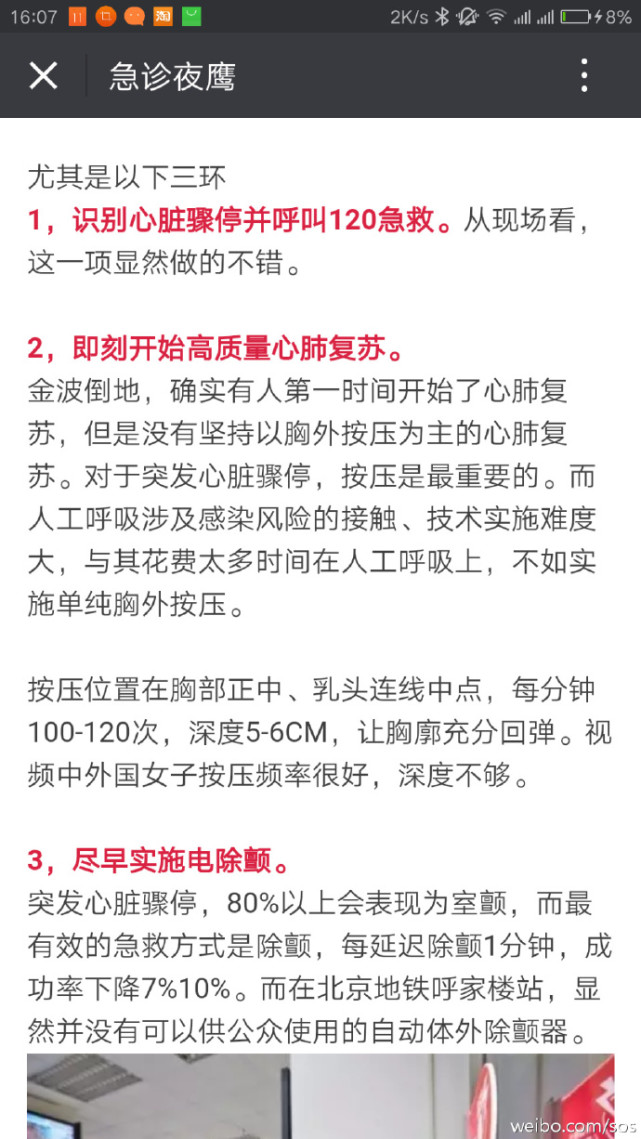 我把我的呼吁发到了自己的微博,被一大堆无知的人喷。好悲伤的现状。还好很多人举了日本AED随处可见的例子,总归有人有了意识,这就很好。如果不去反思,去强调我们国家经济不好不要去向美日看齐,那就是悲哀中的悲哀了。