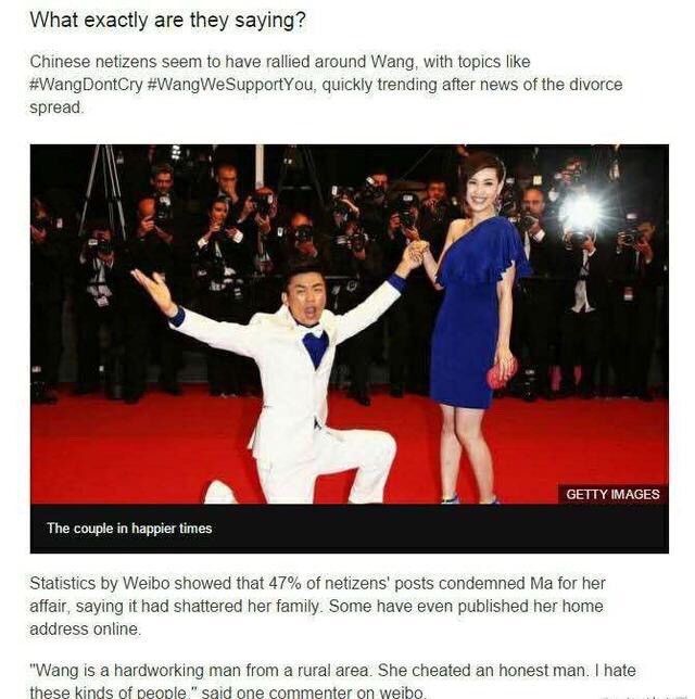 有评论分析,王宝强离婚为什么这么吸引人?首先是因为这一事件包括了名人隐私、偷情、第三者插足、巨额财产分割等八卦话题,这类话题在任何国家对很多读者都有吸引力。在今天的中国,这些八卦不仅是自媒体时代各路“包打听”、段子手施展才华的难得素材。而王宝强的个人傻根形象、奋斗经历和婚姻状况似乎也比其他明星更“有料”。
