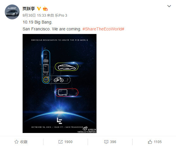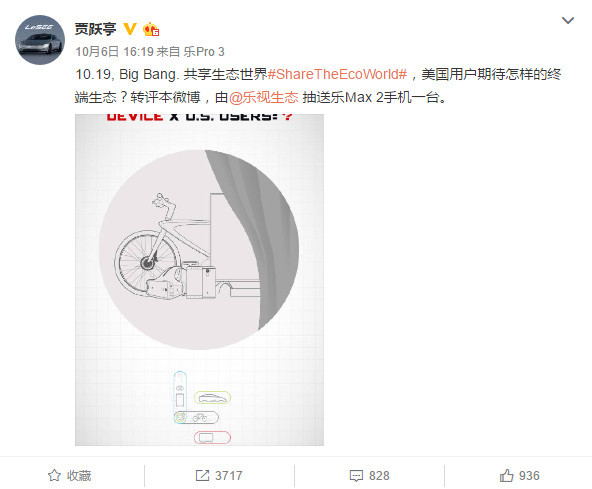 10月1日,乐视创始人贾跃亭贾老板发了条微博宣称: