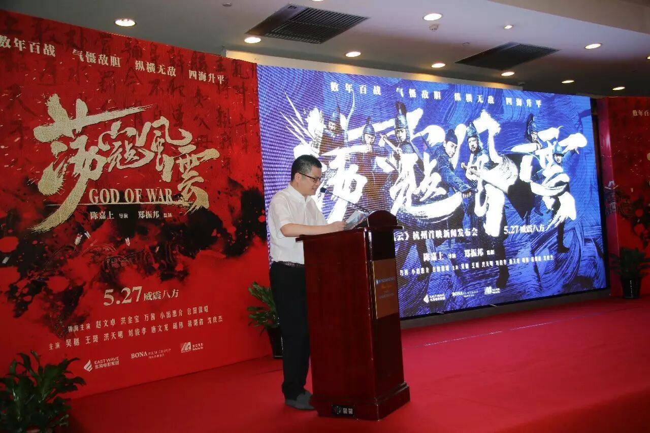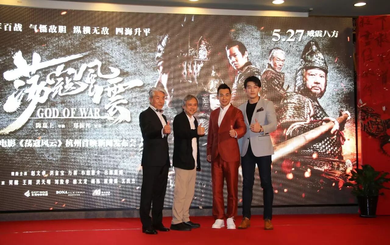 5月23日,古装历史动作大戏《荡寇风云》在杭州举办发布会,导演陈嘉上、监制郑振邦,主演赵文卓、仓田保昭、刘俊孝,主题曲《凯歌》演唱者任龙欣悉数亮相。电影将于5月27日端午档上映。