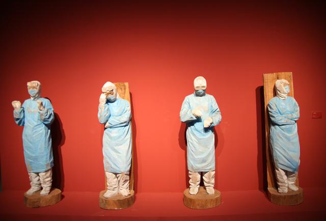 7月1日开幕的“时代答卷”浙江抗疫文艺创作特展,是从全省主题创作的成果中精选而出,属于全艺术门类的融合展。共展出300余件主题创作优秀艺术作品,形式涵盖美术、书法、摄影、民间工艺、戏剧、音乐、舞蹈、电影、电视、曲艺、魔术等门类,以艺术手段描绘2020年上半年浙江人民疫情防控和建设小康社会的历史篇章。