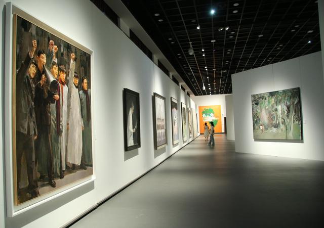 展览现场(依次为美术、书法、摄影、民间文艺部分)