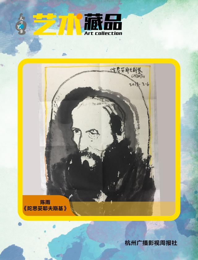 欢迎收藏文广艺术藏品6:陈雨,水墨肖像《陀思妥耶夫斯基》