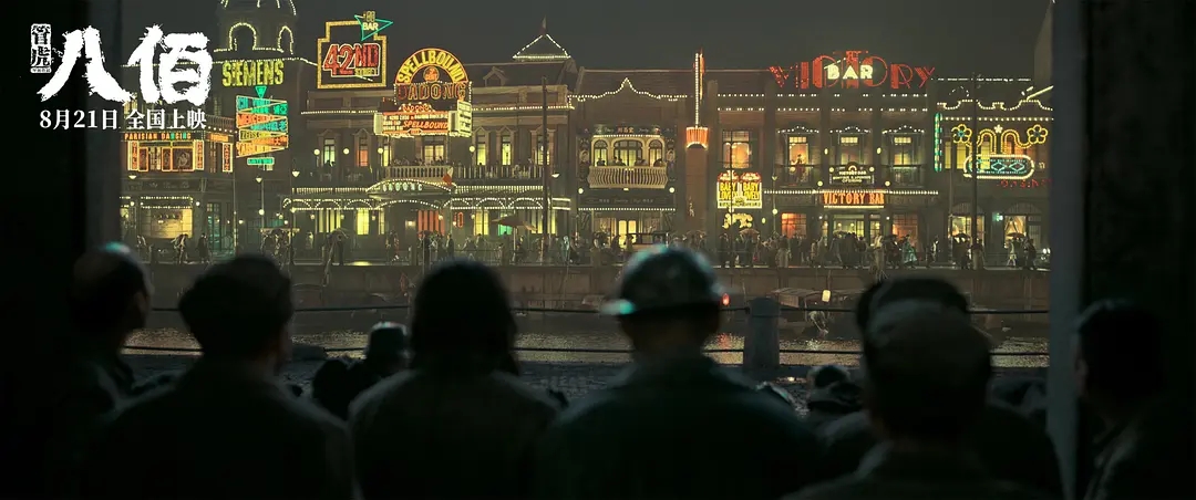 不过,尽管我在观影时数次落泪,但觉得有缺憾的地方是苏州河两岸的对比,过于魔幻主义。租界区的老外们或是坐在阳台上或是坐在GOOD YEAR飞艇上,不停支着望远镜观看战事。形形色色的国人们有的唱戏、有的耍鸟、有的打麻将,终究有隔岸观火的感觉。在如此惨烈的战争中,尽管有些热血百姓后来投入送国旗、送电话线、募捐等活动中,但大部分还是看客的姿态,这给人的情感是断裂的,是不融入的,似乎他们是在演一场戏,失去了战争最需要的真实感和感人的共同的价值观。