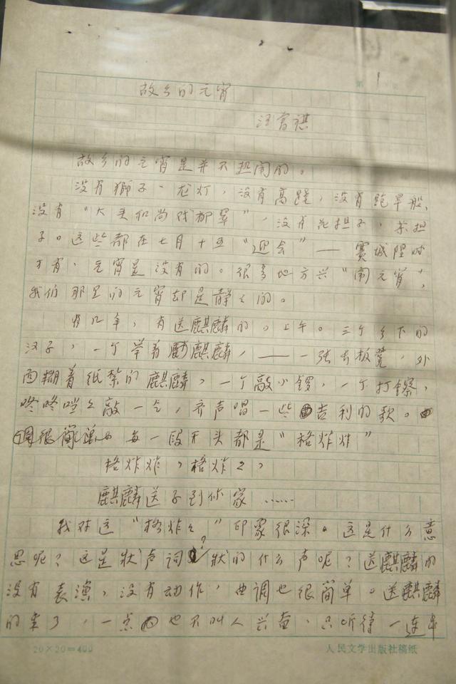 “人间有戏”有汪曾祺画苏东坡、罗汉等人物的作品,画面和题字都很可爱。汪曾祺博学多识,情趣广泛,除文学、书画之外,对戏剧与民间文艺也有深入钻研。这个单元还展出了部分汪曾祺的短篇小说和散文手稿。