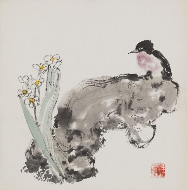 《看水仙》 纸本设色 36cm×36cm 年代不详