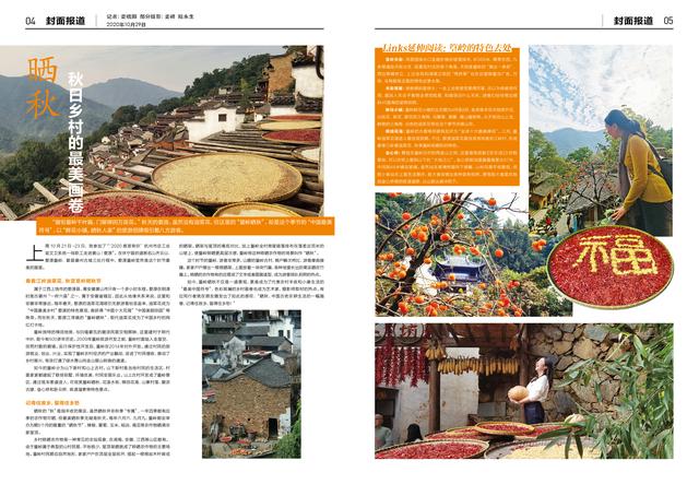 晒秋的“秋”是指丰收的果实,虽然晒秋并非秋季“专属”,一年四季都有应季的农作物可晒,但最美晒秋季无疑是秋天。每年六月六、九月九,篁岭都会举办为期5个月的隆重的“晒秋节”,红辣椒、金皇菊、黄玉米、橙柿子和稻谷、南瓜等农作物晒满农家屋顶。