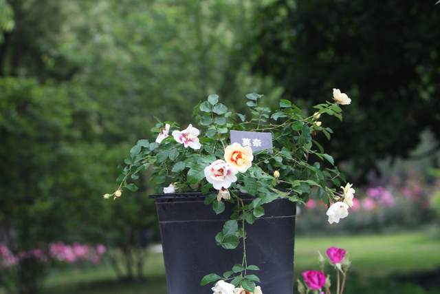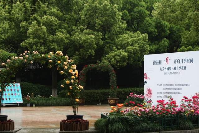 4月25日-5月5日,杭州拱墅区大关公园举行的浪漫相“月”第三届月季花展,共展出月季品种77个,涵盖树状月季、藤本月季、丰花月季、微型月季、大花月季等多个类别,有粉色、黄色、红色、白色、橙色、绿色等多个色系。全园共有月季25000余株,其中约400株是本年新增,其余均是存量月季,是历时7年精心养护的成果。
