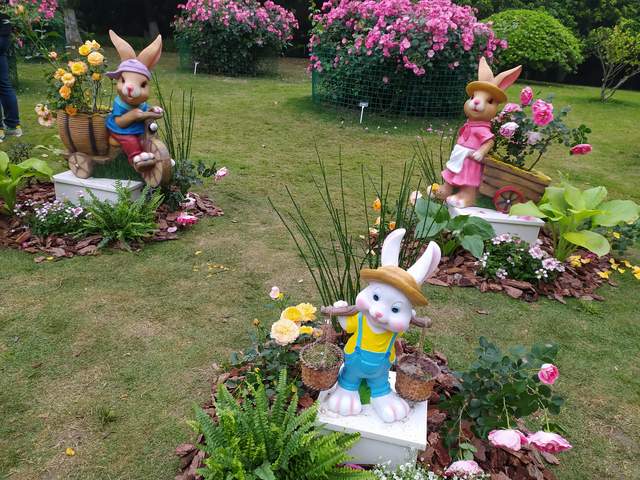 50多米长的“月季爱情隧道”、浪漫的月季花拱门、栽培月季的小兔一家可爱雕塑等,都成为热门打卡地。